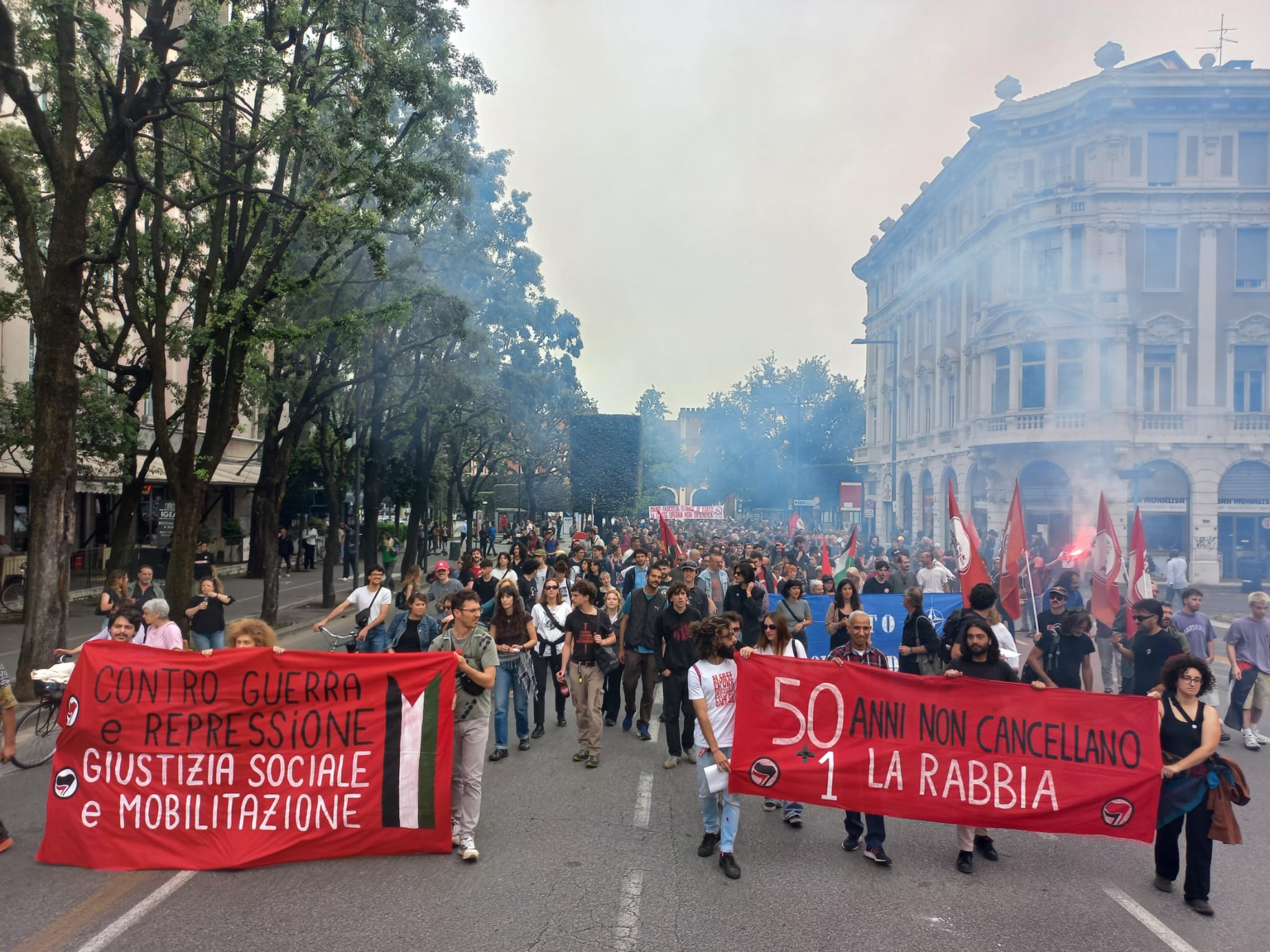 51 anni dopo, sono state numerose le iniziative in città. Tra queste il corteo autonomo e antifascista “Contro le guerre, il genocidio e il dl Sicurezza” organizzato da Magazzino 47, Diritti per Tutti, Collettivo Onda Studentesca, Collettivo Gardesano Autonomo, Cobas Brescia e Cub Brescia. In centinaia, soprattutto giovani, sono partiti da Piazzale Cesare Battisti, hanno percorso l’intera via San Faustino e sono arrivati in piazza, davanti alla Stele dedicata a compagni e compagne Caduti.