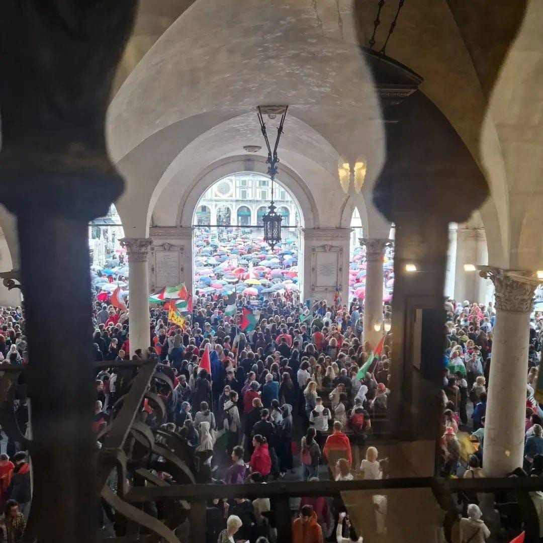 BRESCIA - A Brescia due i cortei: stamattina, nonostante il diluvio, 10mila persone si sono mosse in corteo per ore in tutto il centro storico, bloccando la metropolitana, con centinaia di persone entrante nella centralissima stazione Vittoria. In questi minuti, un corteo ancora più numeroso è partito da piazza Duomo (foto dal concentramento), con il Coordinamento Palestina, che ha già dato appuntamento per una terza mobilitazione, sabato 27 settembre, dalle ore 15.