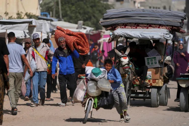 Ennesimo esodo forzato per le famiglie di rifugiati palestinesi, che come pedine vengono obbligate a spostarsi, ora, da a Khan Younis verso il campo profughi di al-Mawasi a ovest, come imposto dall’esercito israeliano che, però, l’aveva bombardato fino a poche ore prima.