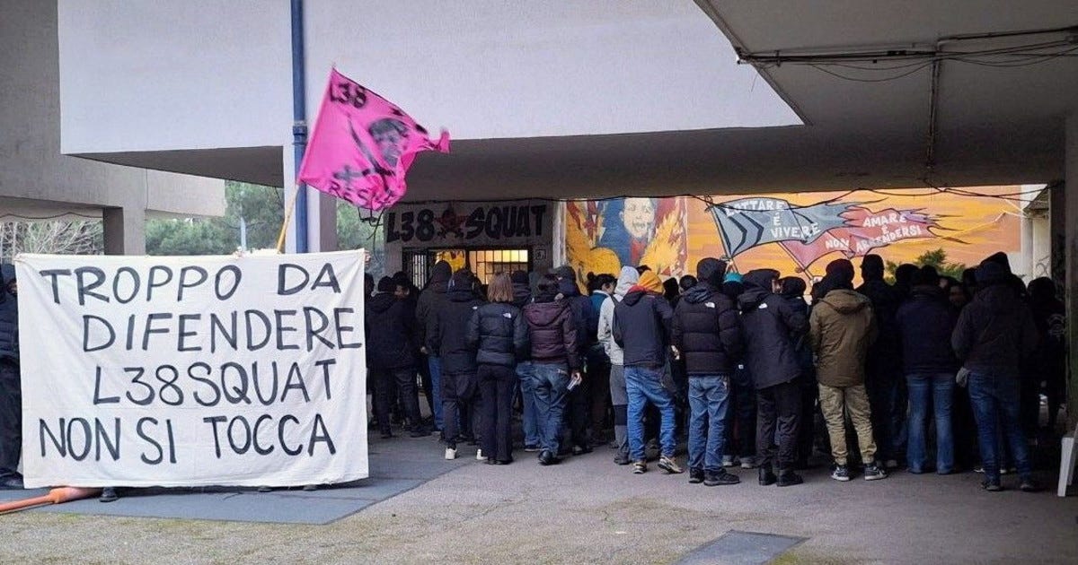MOVIMENTI - Sgombero, alle prime ore del mattino di martedì 28 aprile, di L38 Squat, spazio sociale occupato da 35 anni in via Domenico Giuliotti, nel quartiere popolare Laurentino 38 di Roma. Decine di blindati della polizia in tenuta anti-sommossa si sono presentati all’alba insieme agli operai di Ater, l’azienda per l’edilizia residenziale pubblica capitolina, per sgomberare, demolire e chiudere lo spazio sociale e anche abitativo, per fare spazio a una nuova speculazione, quello del “Sesto Ponte”, con cui Ater intende mette a profitto i locali di proprietà della Regione Lazio.