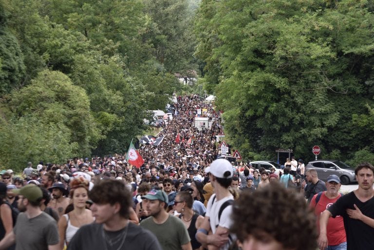 VAL DI SUSA - Diecimila No Tav hanno marciato sabato 26 luglio 2025, in Valle di Susa, contro l’Alta velocità Torino-Lione. Il corteo è partito dal Festival Alta Felicità, organizzato ogni anno presso lo storico presidio di Venaus, dal movimento che da oltre trent’anni si batte contro la grande opera inutile e dannosa i cui cantieri aumentano di numero, devastando sempre più la Valle e le sue montagne.