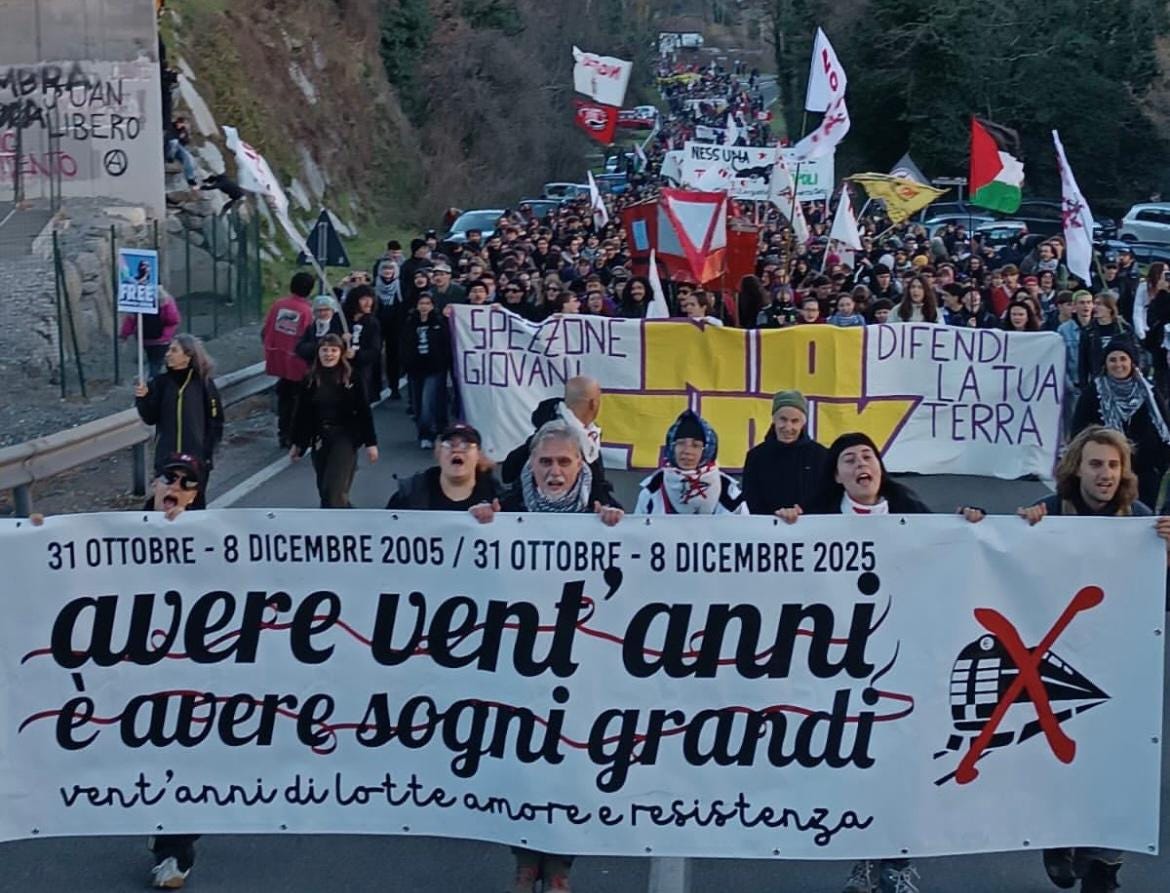 NO TAV - Migliaia di persone hanno partecipato ieri, lunedì 8 dicembre, alla marcia da Venaus a San Giuliano, in Val di Susa, per la tradizionale manifestazione No Tav dell’8 dicembre, che ricorda la liberazione del presidio permanente di Venaus nel 2005, esattamente vent’anni fa.