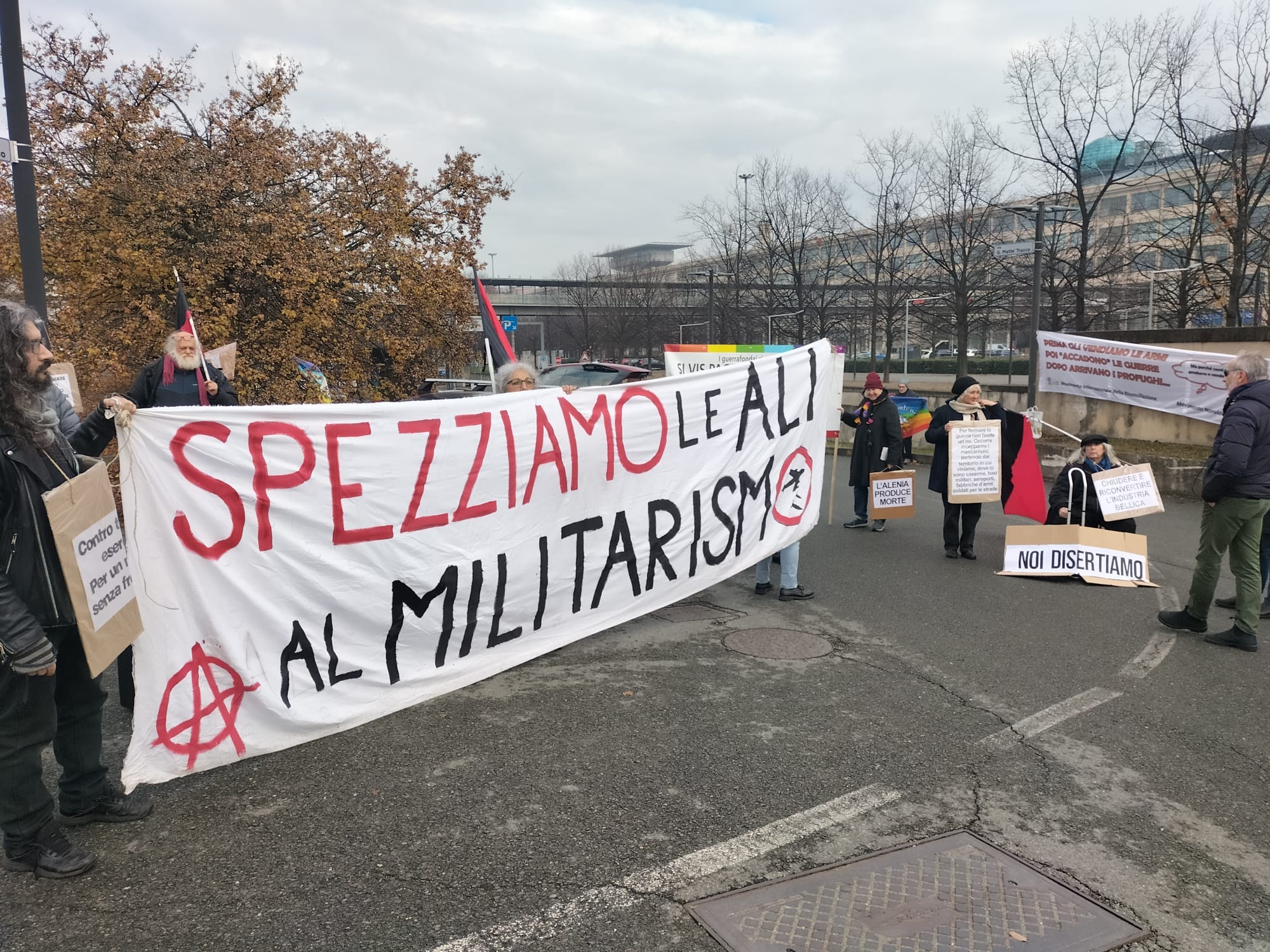TORINO - Nella giornata di apertura dell’Aerospace and defence meetings, il mercato dell’industria bellica aerospaziale che si svolge ogni due anni a Torino, c’erano anche gli antimilitaristi, decisi a mettersi di traverso contro la guerra e chi la arma. Armati di striscioni e cartelli, dalle 11,30 hanno bloccato la strada davanti al cancello del centro congressi, impedendo alle auto di arrivare: i partecipanti sono stati obbligati ad entrare all’Oval a piedi, alla spicciolata, da un passaggio interno al Lingotto. Dopo due ore di blocco, sono andati in corteo verso via Nizza dove, di fronte all’ingresso dell’area del Politecnico ne hanno denunciato la complicità con l’industria bellica nell’ambito del mega progetto di Città dell’aerospazio.
