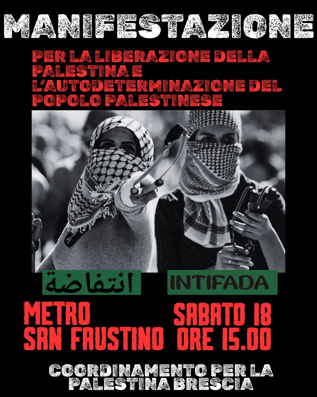 Infine Brescia; sabato corteo del Coordinamento Palestina che partirà, alle ore 15, dalla metro San Faustino, che si intreccerà poi con l’annuale Marcia per l’accoglienza, che sempre alle ore 15 si concentra nella vicina piazza Rovetta, come spiega Umberto Gobbi, di Diritti per Tutti e Coordinamento Palestina di Brescia.