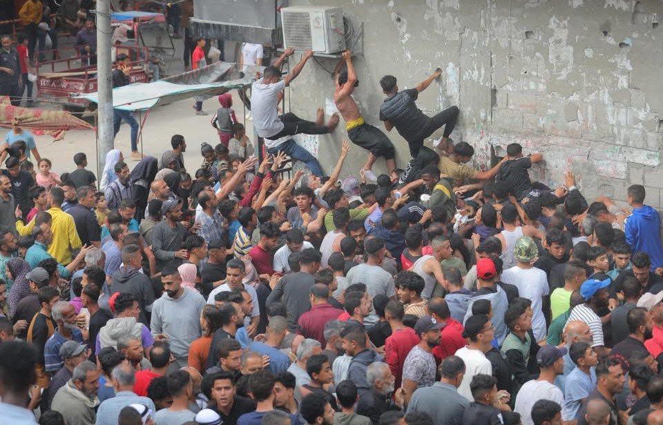 Risultato: bande armate, contrabbandieri, mercato nero, ma soprattutto la disperazione di oltre 2 milioni di persone senza più cibo, con scene – oggi – di assalti disperati (vedi foto, da Times of Gaza) da parte di migliaia di persone, accalcate davanti ai pochissimi punti di possibile distribuzione, per un po’ di farina.