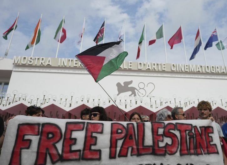 VENEZIA - Sabato al Lido di Venezia, mentre gli occhi del mondo sono puntati sulla Mostra internazionale del cinema, arriva la manifestazione “Stop al genocidio – Palestina libera”. Oggi le realtà promotrici hanno voluto ribadire la necessità di puntare i riflettori sul genocidio in corso a Gaza e sulla complicità dei governi occidentali.