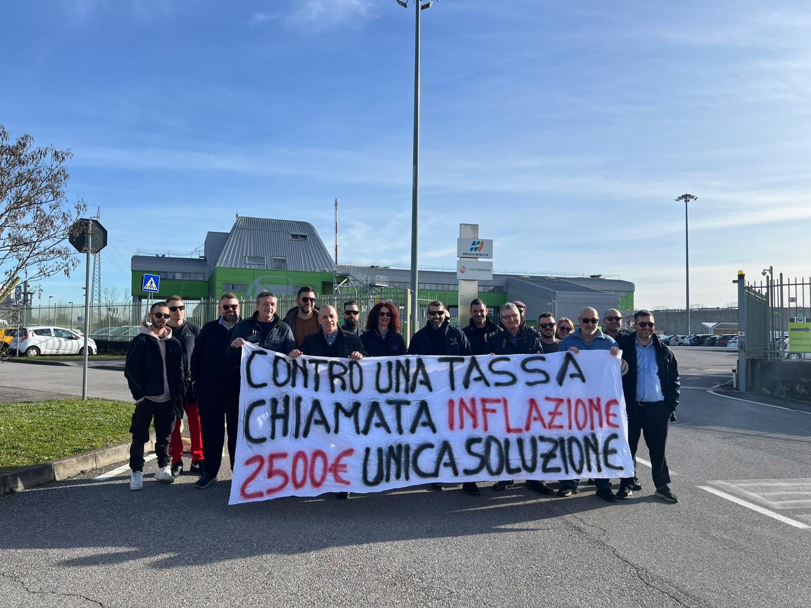 BRESCIA - Presidio di protesta Nel pomeriggio di venerdì 13 febbraio davanti alla sede di Brescia Mobilità di via Magnolini, 3. I lavoratori e le lavoratrici lamentano stipendi troppo bassi che determinano la cronica mancanza di autisti. Per questo chiedono che un premio annuale da 2.500 euro, già erogato negli ultimi 2 anni, diventi “adesso strutturale e ci si attivi per un adeguamento dei salari che tenga il passo con il costo della vita”, particolarmente feroce in una città come Brescia. I diversi interventi sul sito di Radio Onda d’Urto