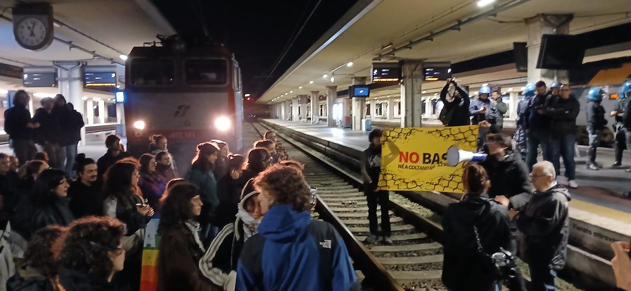 Contro la logistica di guerra, che muove munizioni e mezzi in tutto il mondo, in Toscana, ieri sera è stato respinto al mittente un treno carico di mezzi militari ed esplosivi diretti all’hub militare regionale. Il convoglio è stato prima rallentato a Livorno e Pontedera, poi bloccato dal Movimento No Base al binario 3 della stazione di Pisa. Per ore decine di attiviste-i hanno stazionato sui binari, fino a quando il treno è stato costretto a fare marcia indietro.