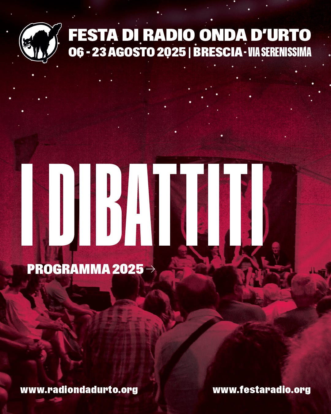La newsletter di questo venerdì sera la dedichiamo agli eventi culturali e politici, a dibattiti, presentazioni di libri e molto altro in programma alla Festa di Radio Onda d’Urto 2025: mancano infatti 12 giorni all’apertura dei cancelli della XXXIII edizione in via Serenissima a Brescia e tante sono le iniziative in calendario ogni giorno!