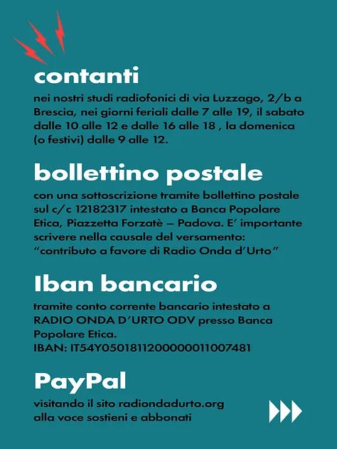 Buon compleanno Radio Onda d'Urto: le trasmissioni speciali di oggi | Milano: presidio solidale per Gino e per tutte le persone antifasciste braccate da Orban | Ucraina: Kiev attacca una nave russa